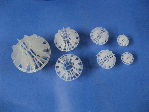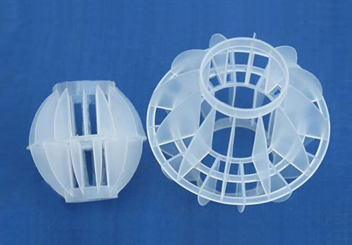 采用聚丙烯塑料制成球狀,在球中部沿整個周長有一道加固環,環的上下各有十二片球瓣,沿中心軸呈放射形布置,適用于二氯化碳脫氣塔,接觸反應塔等裝置。