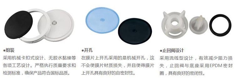 1、加厚型螺旋壓蓋與膜片緊扣采用螺紋反鎖機(jī)械裝配,保證膜片永不脫落。