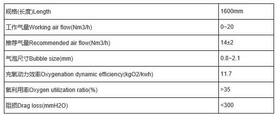 單根曝氣管規格¢60mm×1600mm Tube diffuser per pc φ60mm*l600mm